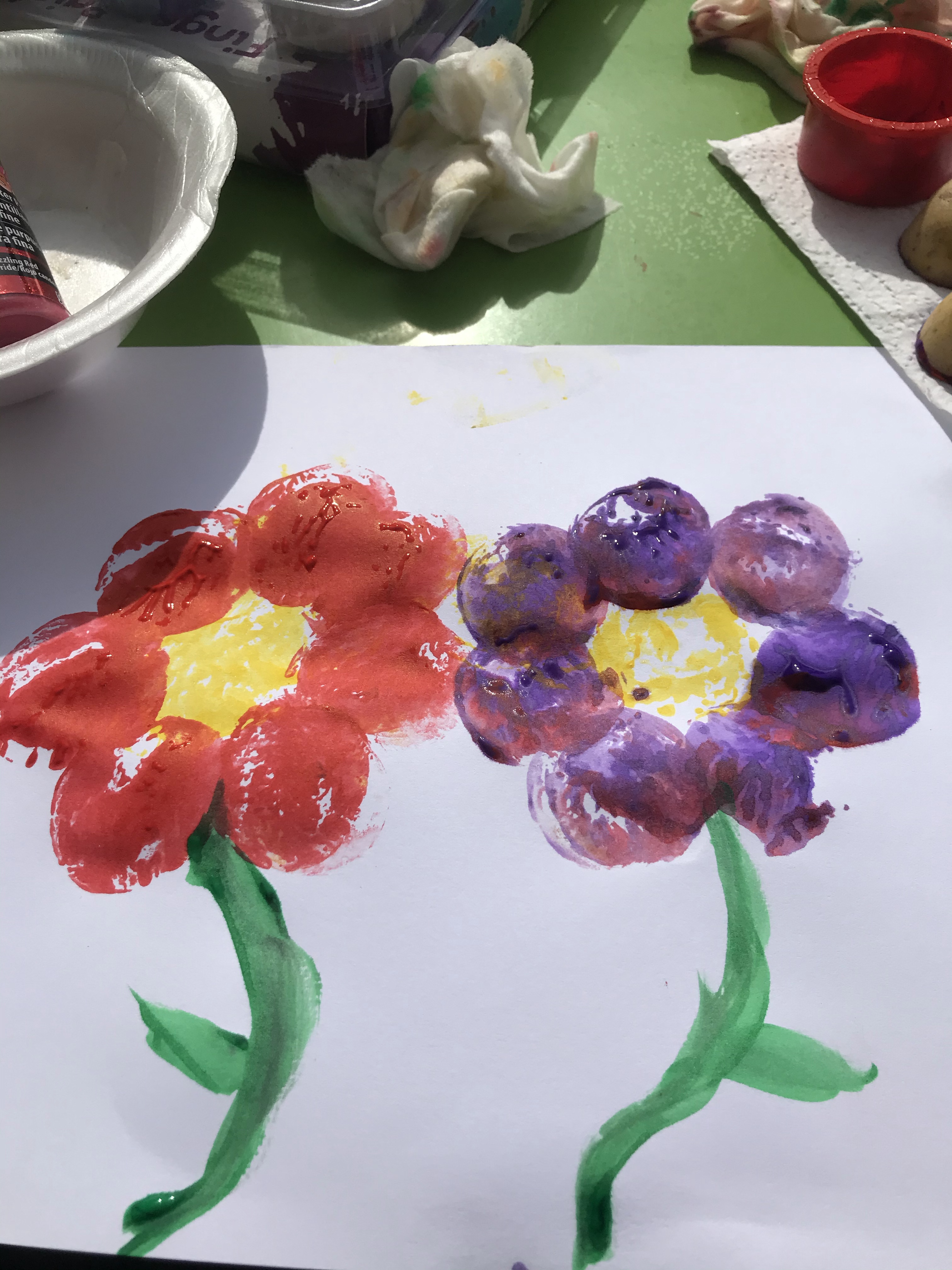 – Make sure to put lots of paint on the potato so that it transfers to the paper, you could also use a paintbrush to paint the potato