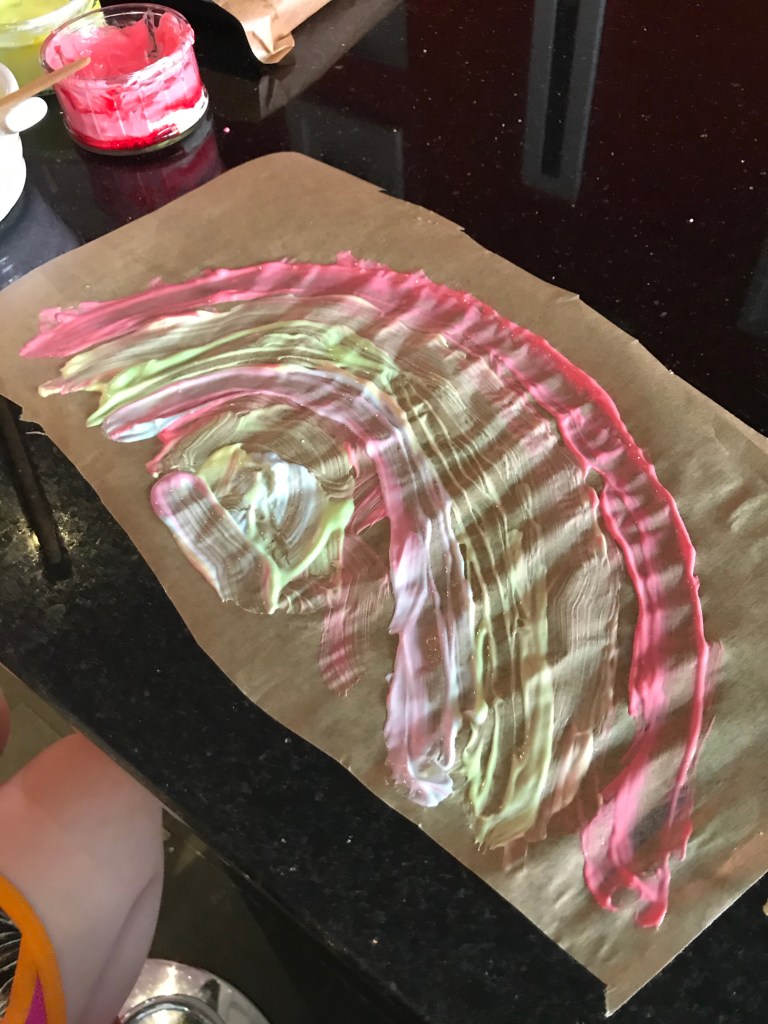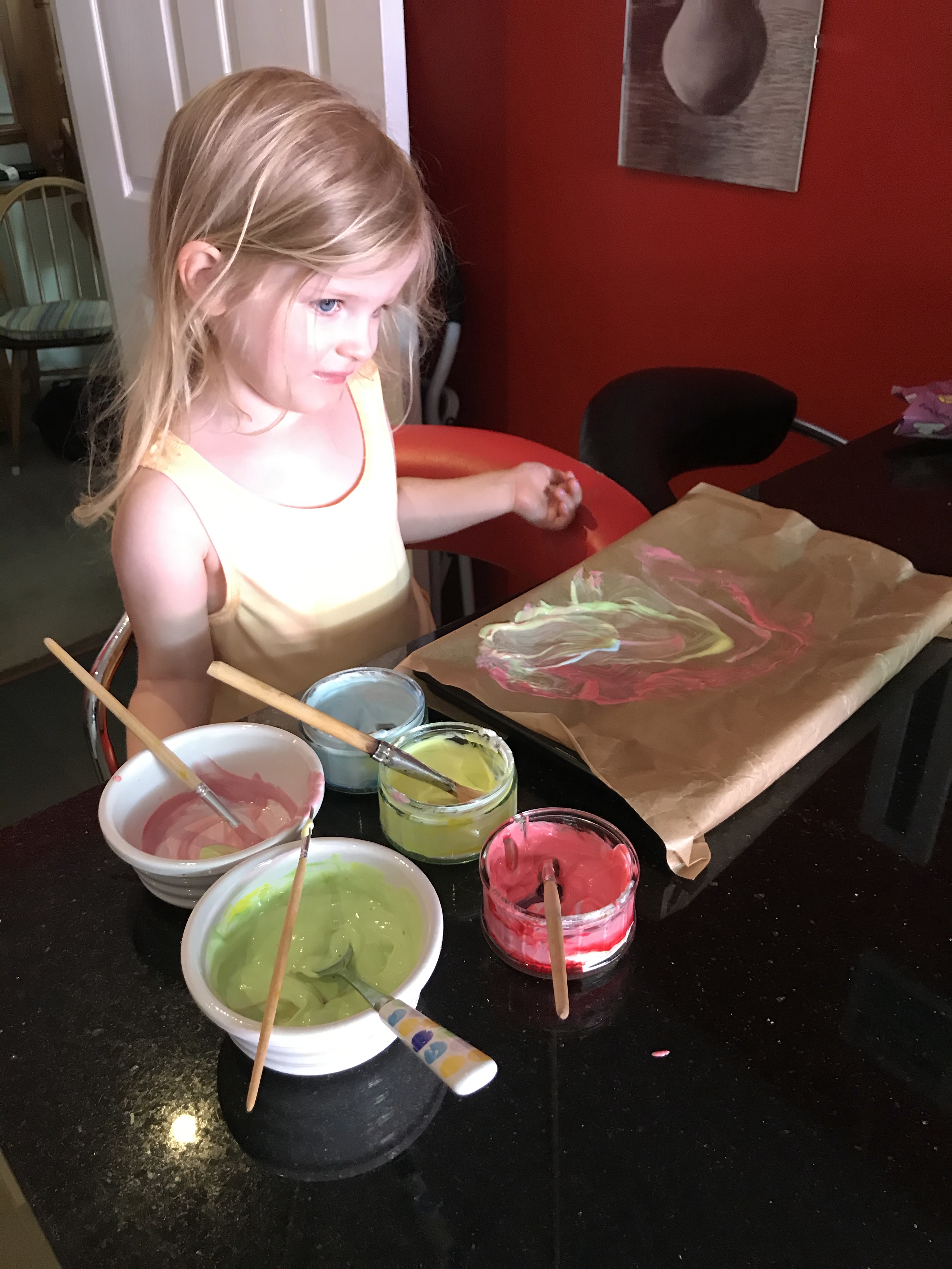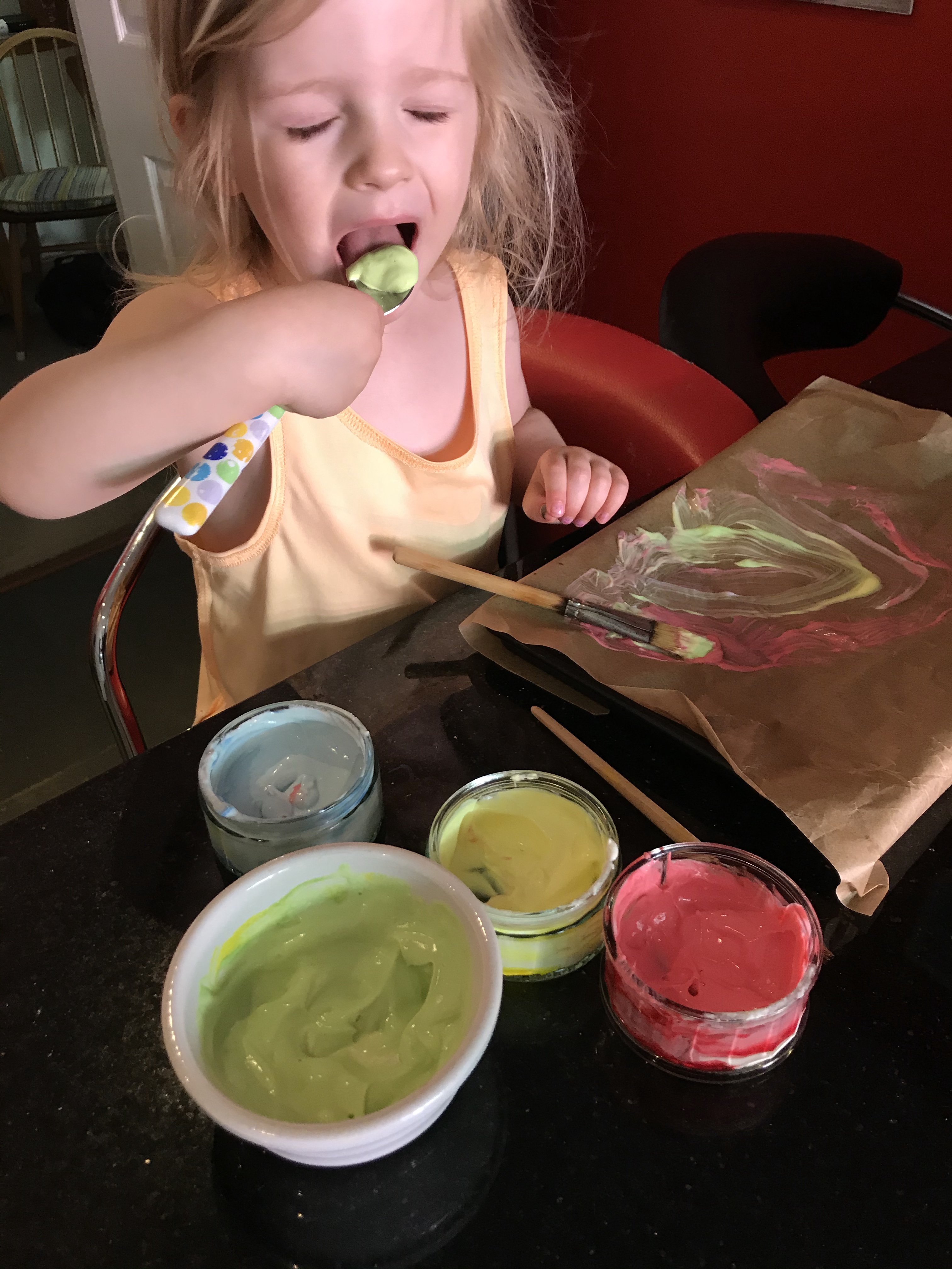 Food paint is a fun activity to do with your toddler and you can enjoy eating or freezing the leftovers.