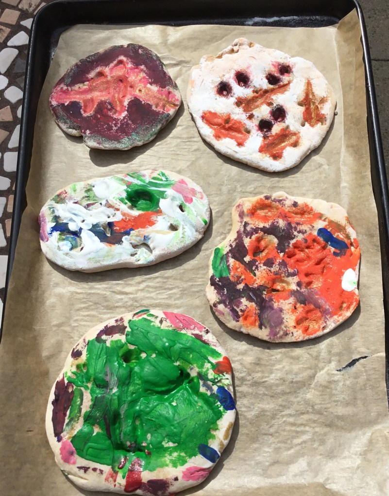 – Try keep the salt dough reasonably thin as it will dry out faster, but not too thin so that it will break or you canβt see the imprints.