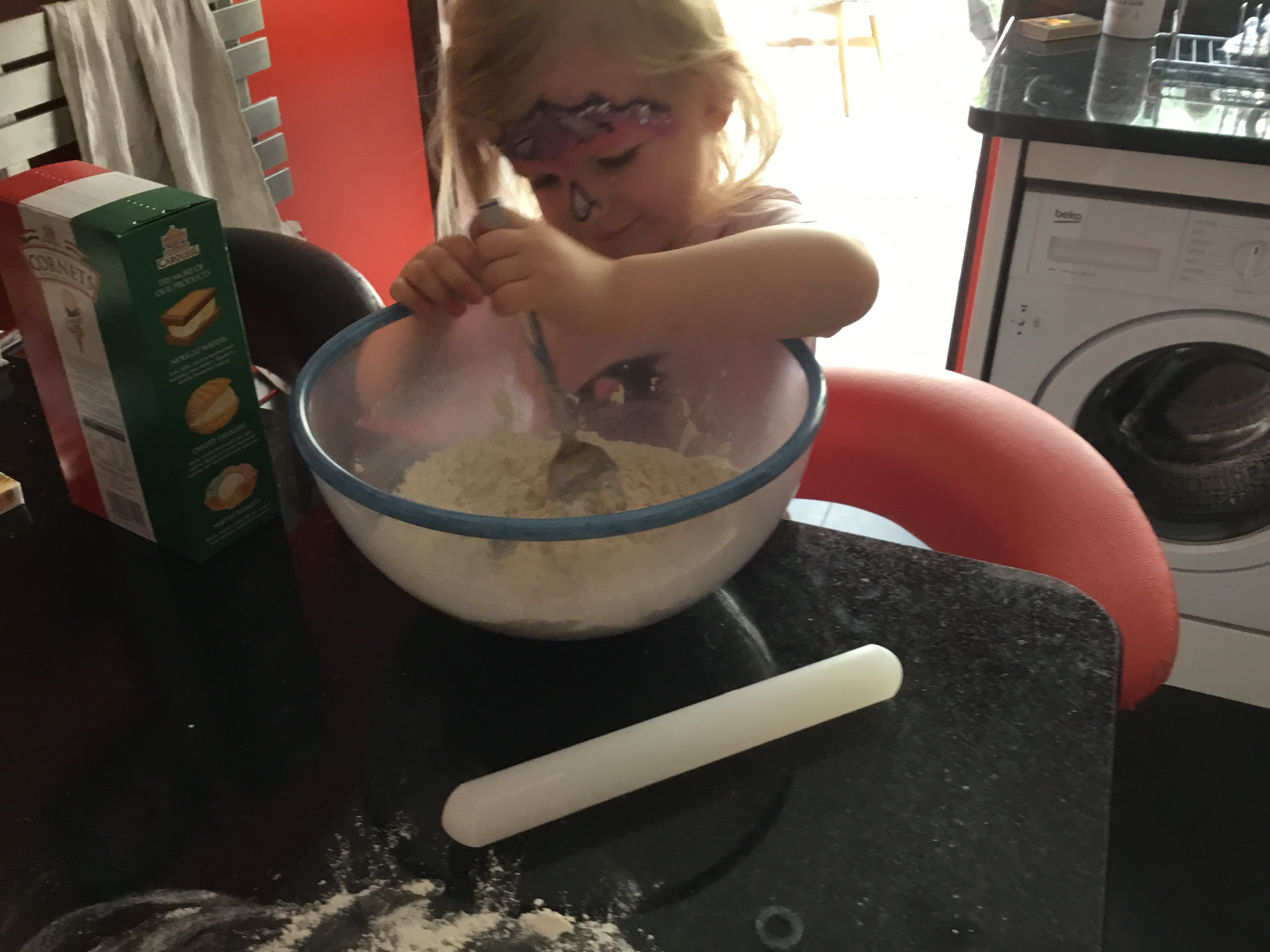 - Mix 250g plain flour with 125g table salt in a large bowl.