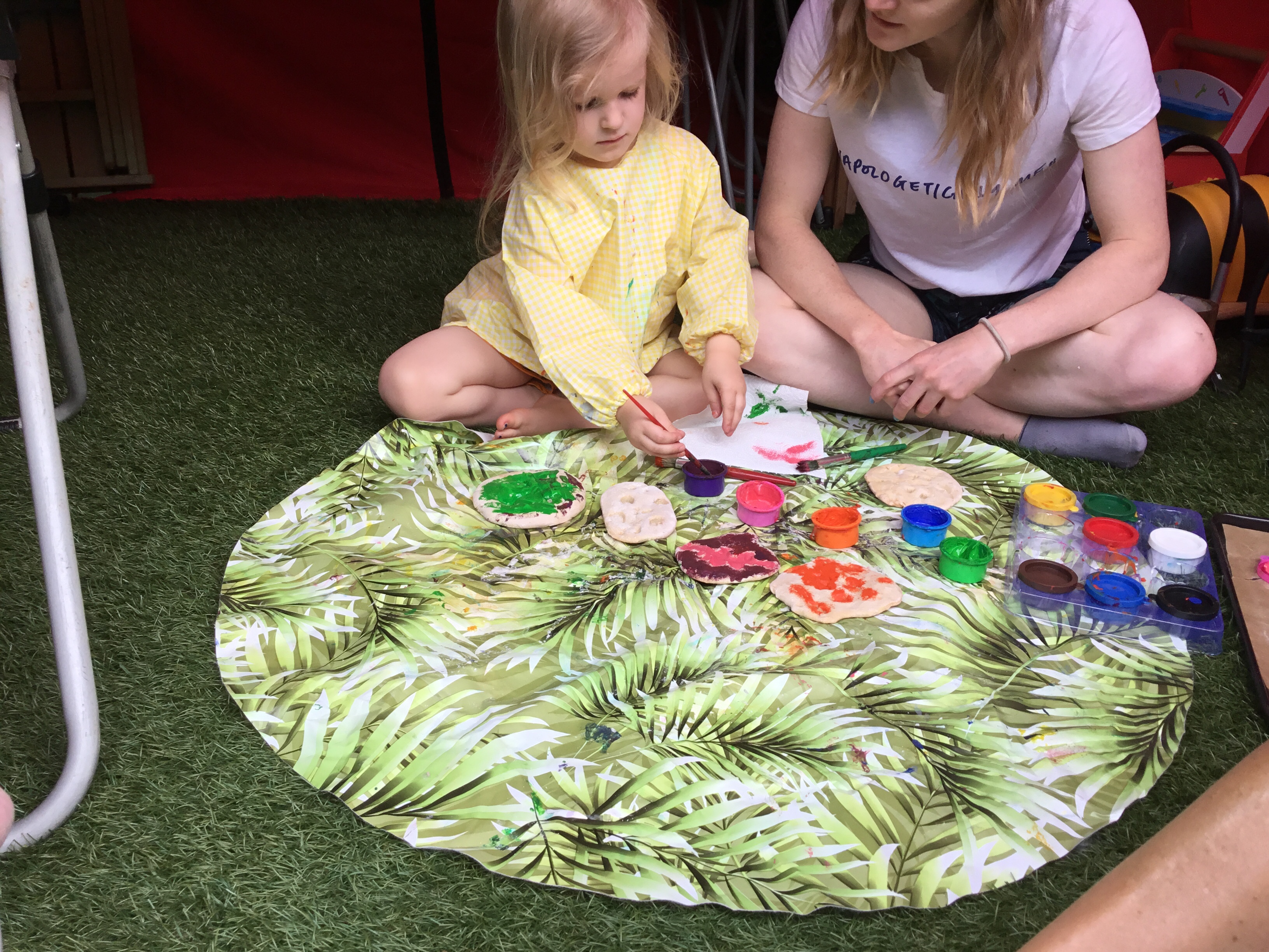 – Have fun experimenting with different types and sizes of dinosaur toys. You could also make fern imprints or use bugs (see here).