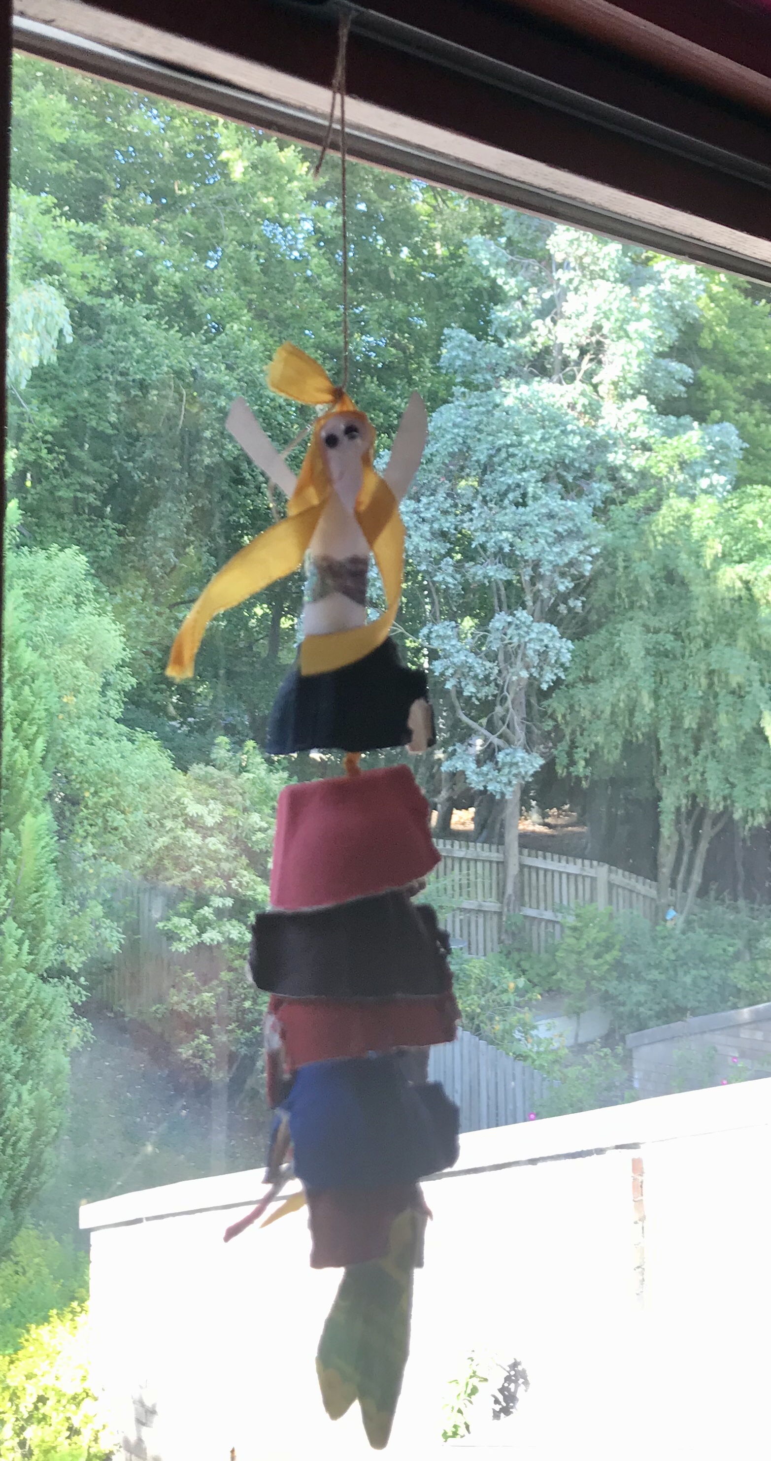 - I also stuck the extra ribbon to the back on the mermaids body, and tied an extra piece of string to the ribbon so that I could hang up the mermaid.