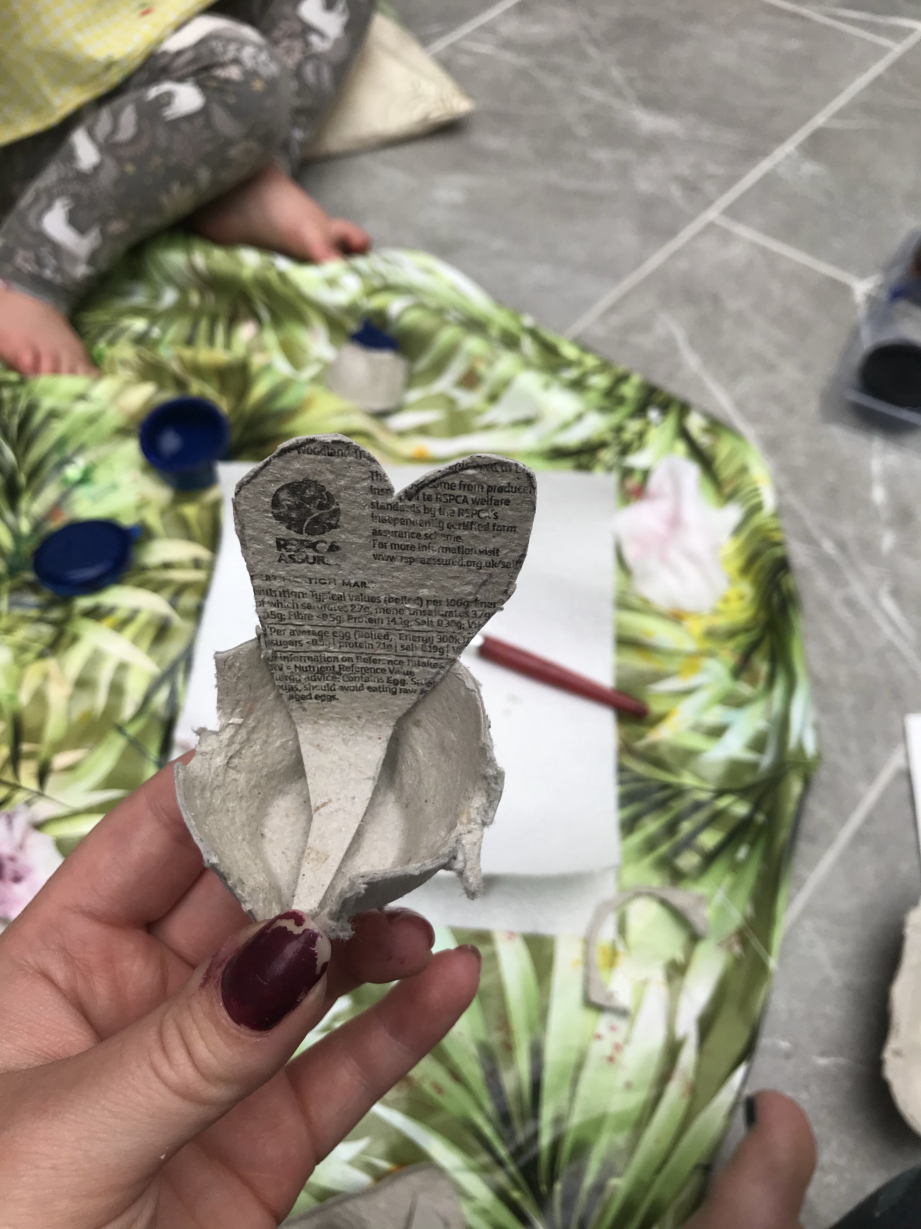 – Extra recycling points if you manage to cut out the tail and the body from the remaining lid of the egg box, otherwise use card.
