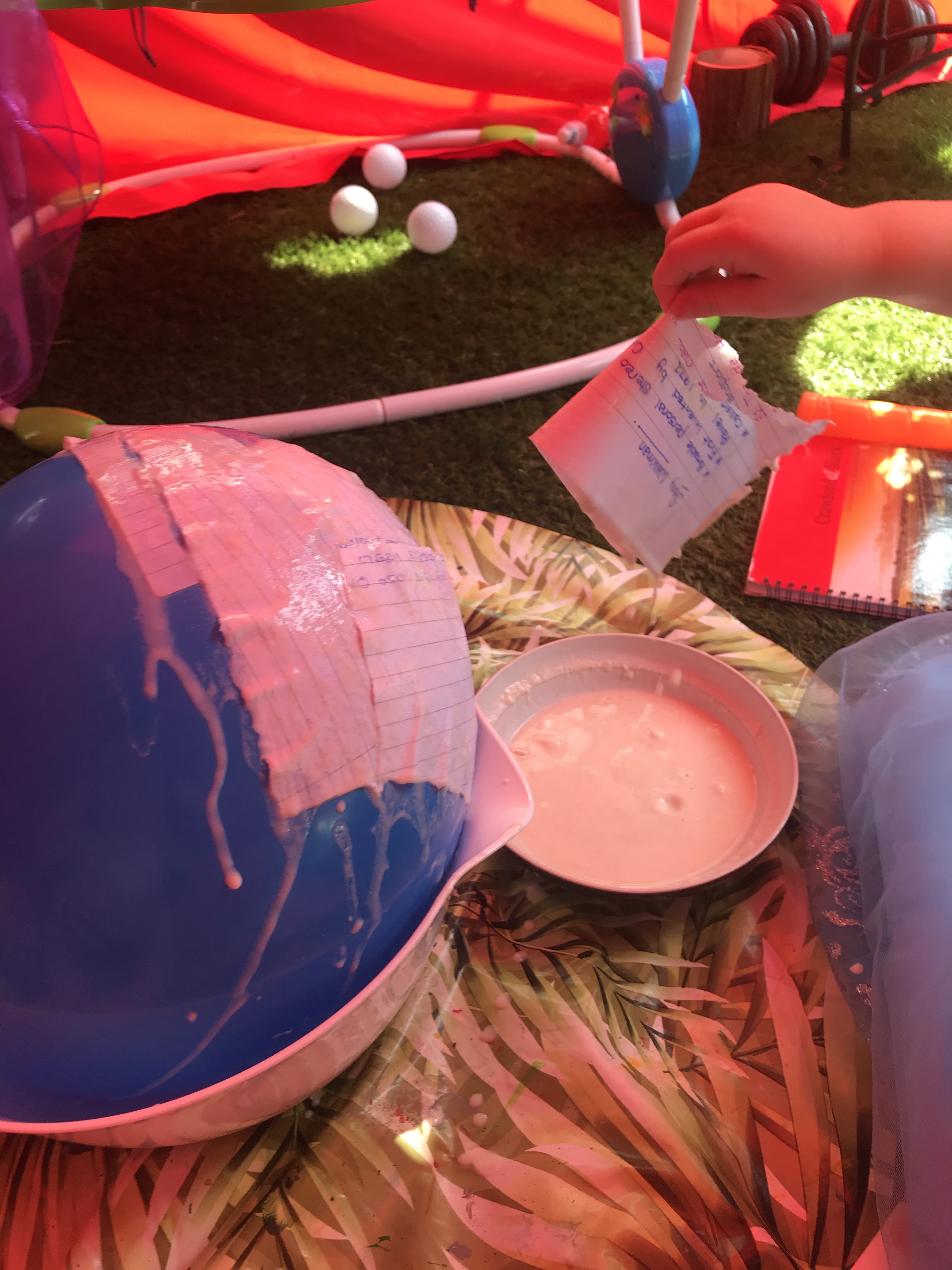 – My daughter didn’t like getting her hands ‘dirty’ from the paste so we used a paintbrush to add the glue to the outside of the paper-Mache.