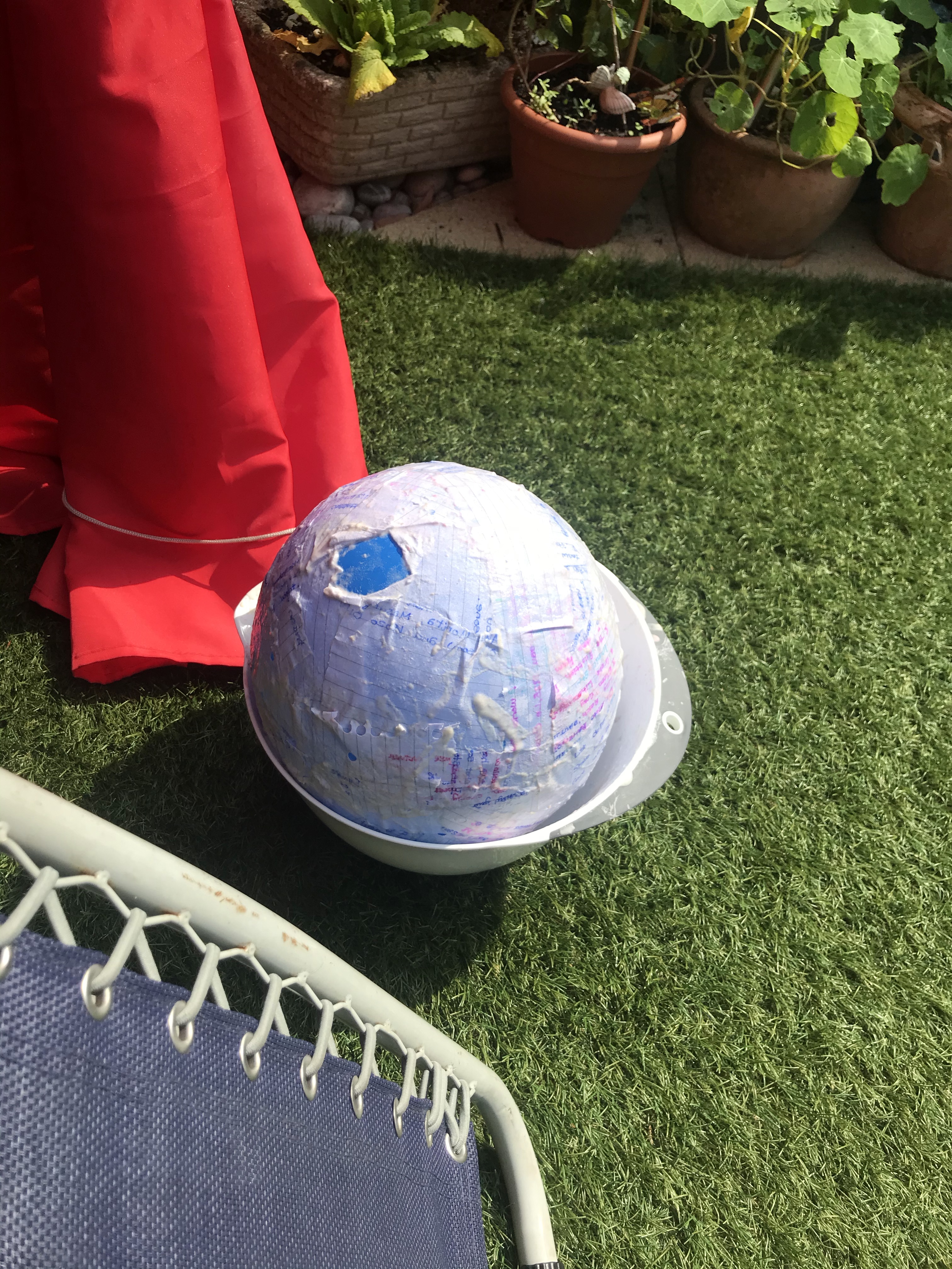 - Once it’s all dry pop the ballon inside, fill with sweets.