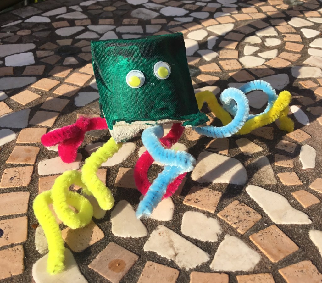 - Cut the four pipe cleans in half and twirl around a finger to make tentacles