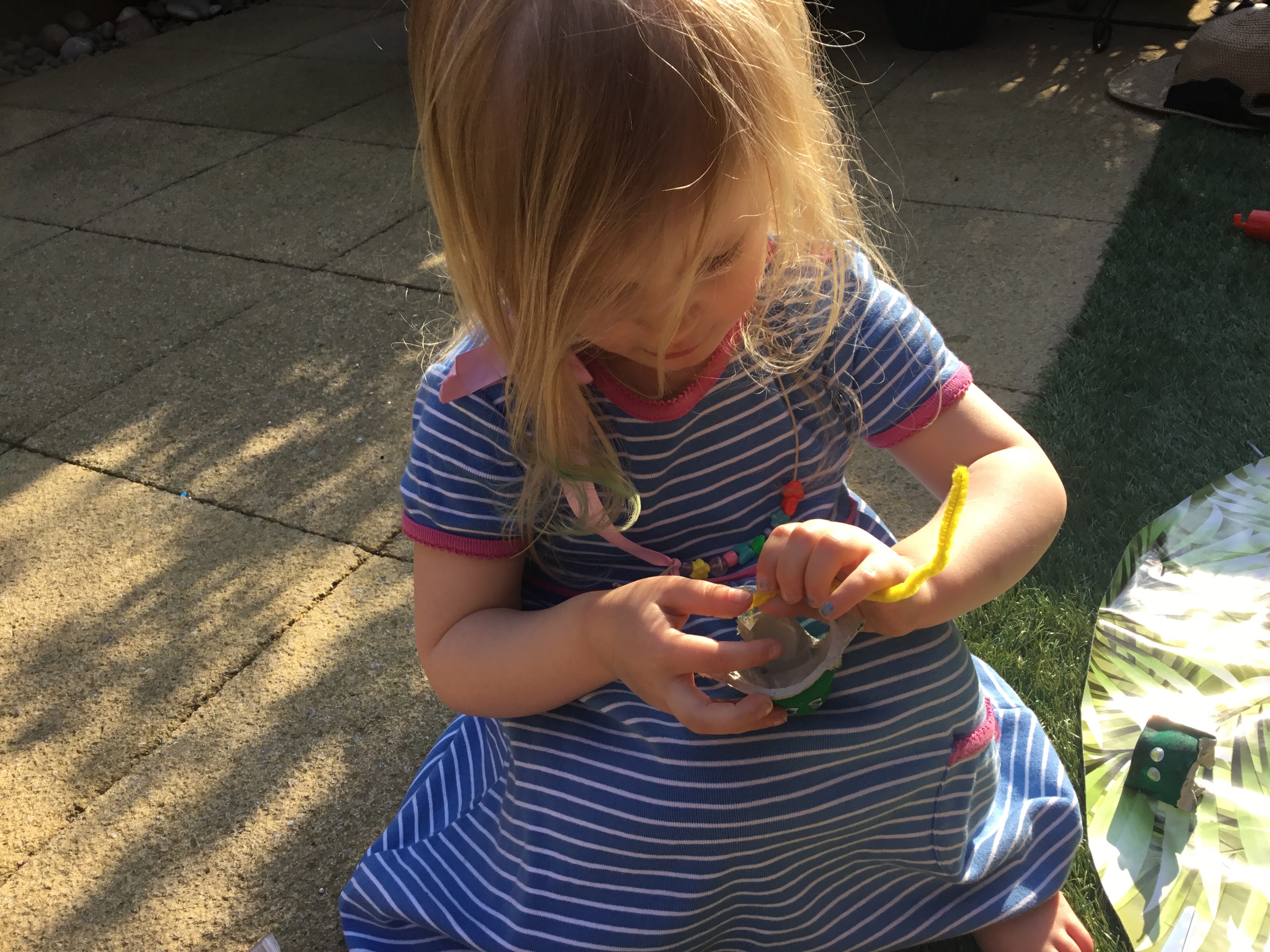 - Colour an individual egg holder green using paint or felt pen